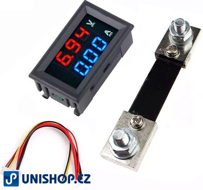 - Ampérmetr / voltmetr panelový 100V 0-10A 0-100A DC DSN VC288
