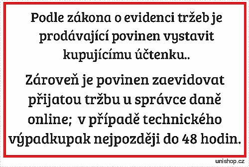 | Připojení k EET | 3G, GPRS, WiFi, nebo LAN (podle výběru typu a popisu pokladny) |