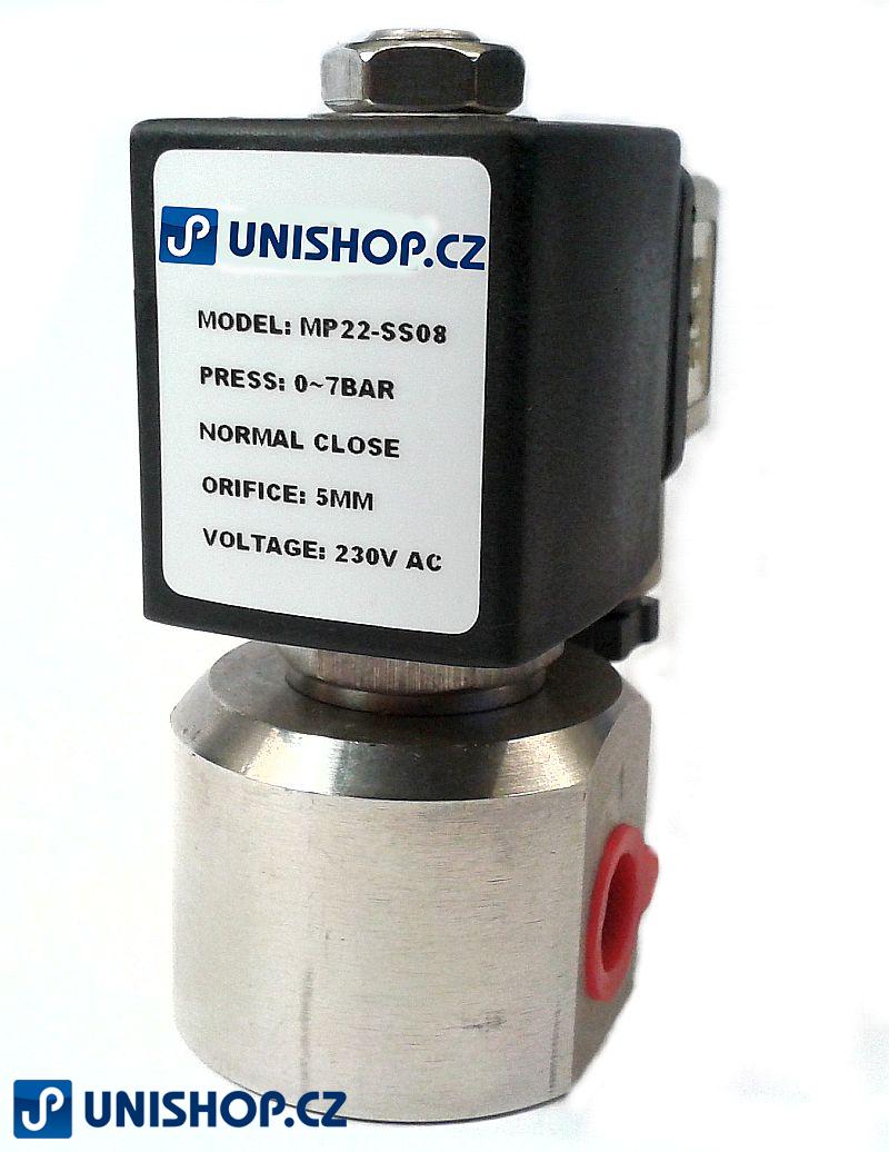 Elektromagnetický ventil MP 22-SS08 - G 1/4"- NC; 12V DC - nerezový
