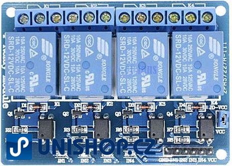 4 kanálový relé modul s napájecím napětím 12V osazen optočlenem