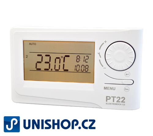 PT22 je prostorový digitální termostat s podsvíceným displejem pro automatickou regulaci vytápění.