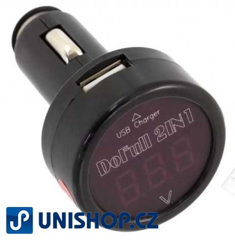 - Voltmetr do auta s nabíječkou USB (5V/2,1A), rozsah měření 8-30V