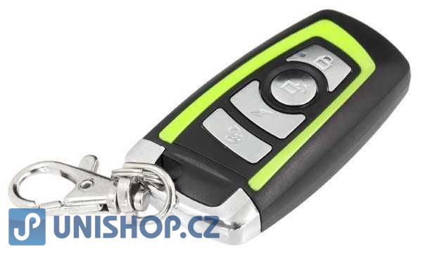 Dálkový ovládač s možností kopírování signálu již existujících ovládačů s PEVNÝM kódem na frekvenci 433,92Mhz. Použití: některá auta, brány, zabezpečovací zařízení apod. Jednoduché kopírovánípomocí vzájemného přenosu ovládačů a následným uložením kódu. Počet kanálu: 4 napájení: baterie 3 x CR2016 1) Vymazat kód Stiskněte a držte obě tlačítka a "lock" "unlock" na dálkovém ovládání současně, LED dioda zabliká 3x, pak obě tlačítka pusťte, vypnutá LED dioda udává jednoznačný kód. 2) Duplikace Držte originální dálkový ovladač v levé ruce a kopírovací dálkový ovladač v pravé ruce, ujistěte se, že máte ovladače dostatečně blízko u sebe(musí se dotýkat, možná je přiložit zády k sobě). Stiskněte oba zámky tlačítek na obou ovladačích ve stejnou dobu a podržte, LED se rozsvítí 3x o 2 vteřiny později, pak rychle zabliká a uvede kód tlačítka zámku, které je duplikováno novým dálkovým ovladačem. Výše uvedenou metodou duplikujte další 3 tlačítka. 3)Obnovení Pokud jste vymazali kód uložený na kopírovaném dálkovém ovladači, můžete ji obnovit stisknutím a podržením obou tlačítek "lock" a "fulgurite" (nahoře) na dálkových ovladačích současně, LED zabliká 2 krát a vypne, kód kopie dálkového ovladače je obnoven. |